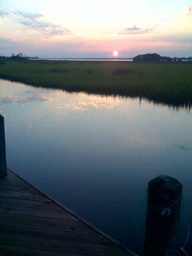 This is a video of the sun setting over Bogue Sound in Emerald Isle, N.C. on Thursday night. I put the camera on the edge of the yard and dock of the cottage we rented and just let it record. This is real time -- no speeding up or slowing down in this one.